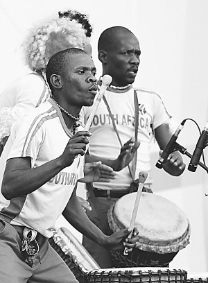6月11日,来自南非的演员们为游客表演节目。当日,以展示非洲多元风情为主题的南非“非洲印象”综艺表演在非洲广场上演,精彩热烈的民族歌舞为观众带来了一场视觉盛宴。