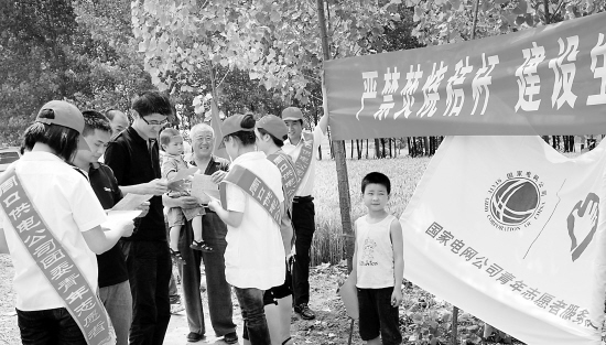 昨日,郸城县电业局组织青年志愿者到田间地头,宣传麦田防火知识,帮助困难群众收割小麦。( 刘兴刚 王胜涛 摄)