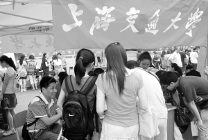 6月17日,考生和家长在上海交通大学的咨询点了解信息。当日,数十家高校在成都市石室中学设置咨询点,为今年的高考考生提供录取咨询。新华社记者 陈燮 摄