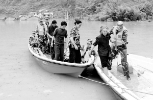 图②:广西南丹强降雨 武警助瑶族同胞安全转移 6月18日,广西南丹县八圩瑶族乡立坳村强降雨造成严重内涝,部分群众和立坳村小学180名师生被洪水围困。接到险情报告后,武警河池市支队官兵立即赶赴现场转移灾民。