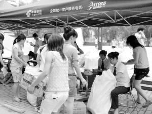 暑期来到,为方便学生返乡,近日,周口市邮政局组织营业收寄人员进驻周口师院、周口职业技术学院等院校,设立“临时包裹收寄点”,开展“2010年包裹收寄进校园”服务活动。学生足不出校门就能享受到邮寄包裹的各种优质服务。(记者 王映 摄)