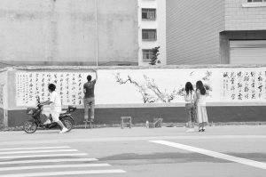 郸城县在城市综合整治中注重实效,发挥“中国书法之乡”文化名片优势,在县城府西路、西二环等街道实施“书画街”工程,全县30多位书画家在1000多米长的墙壁上挥毫泼墨,创作书法、美术作品200多件,不仅美化了城市,提高了城市品位,还让广大群众欣赏到了书法、绘画艺术,深受群众喜爱。