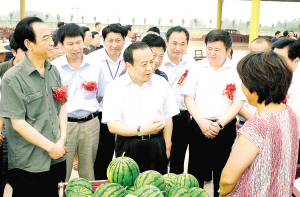 开业仪式结束后,王流章、毛超峰、徐光等还专门到市场内参观指导,并与前来交易的农民亲切交谈,询问产量,了解价格,和他们一起核算收成。随后,省市领导还到市场物流配送中心、信息发布中心和质量检测中心进行察看,详细了解市场的有关情况,并与市场负责人共同探讨如何进一步拓宽市场,服务客户。在华龙农贸市场质量检测中心,毛超峰要求当地政府切实加强对市场商品的质量检测和认证,确保进入市场的农副产品质量安全。