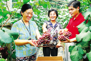 昨日,鹿邑县贾滩乡柿元行政村的村民正在采摘早熟葡萄。该乡李顺利等青年农民通过组建葡萄种植合作社,2年来带动周边96户群众建立了400亩无公害大棚葡萄种植基地,年实现产值上千万元。