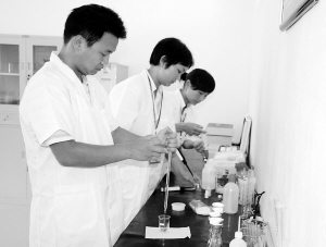 ▲西华县华龙花木果蔬综合批发市场是河南省纪委重点帮扶项目。该市场主要从事苗木、花卉、果品、蔬菜、农副产品、农资综合交易等,运营后将有效带动当地及周边地区产业结构调整,拉动县域经济健康发展。图为工作人员对果蔬进行质量检测。 (记者 李寒 摄)