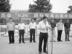 张锦印指出,由于受国际毒潮影响,在我国吸、贩毒现象死灰复燃,迅速蔓延,涉毒犯罪活动不断出现,特别是外出务工人员吸、贩毒违法犯罪不断增加,给家庭、社会带来严重影响,全县禁毒斗争已呈现出严峻形势,禁毒工作艰巨而沉重。今天,县禁毒委在这里举办“6·26”国际禁毒日宣传活动,目的就是充分调动广大人民群众和社会各界参与禁毒斗争的积极性,增强全民 “珍惜生命,远离毒品,参与禁毒”的意识,推动全县禁毒工作深入开展,净化社会发展环境。长期以来,县委、县政府对禁毒工作高度重视,采取了一系列措施加大打击毒品犯罪力度,对吸毒人员开展较有成效的解毒措施,全县禁毒工作取得明显成效。去年以来,全县成功破获“4·15”、“9·17”、“10·31”、“9·12”等十几起特大贩毒案件,抓获犯罪嫌疑人30多人,缴获海洛因近200克、冰毒1000克,铲除罂粟8000多株,收缴贩毒用车10余辆,收容戒毒人员100多人,强制戒毒10多人。但是,由于当前全县外出务工人员较多,一些人法制意识淡漠,在外从事毒品犯罪勾当;一些涉毒犯罪前科人员在外地重操旧业,从事毒品犯罪活动,影响了我县在外界的形象。