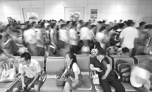 7月1日,在济南火车站,旅客在排队进站。当日,2010年全国铁路暑运工作启动。根据铁道部日前出台的暑运方案,2010年铁路暑运自7月1日起至8月31日止,共62天,预计将发送旅客3.17亿人次,日均发送旅客511万人次,同比增长8%。
