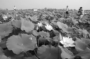 近日,由于龙湖内荷花次第盛开,一朵朵婀娜的荷花挺立于一片翠绿的荷叶间随风摇曳,吸引了众多游客前来观赏。俊豫 杨歌 摄