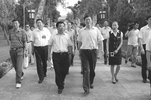 6月29日,在周口市参加河南省人大工作研讨会的省人大常委会、各省辖市人大常委会有关领导在市人大副主任梁照仲、县委书记任连军的陪同下到淮阳参观。俊豫 忠勇 摄