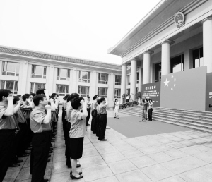 7月1日,最高人民检察院机关举行检察官集体宣誓仪式,240多名检察官面对国旗庄严宣誓:我是中华人民共和国检察官,我宣誓,忠于国家、忠于人民、忠于宪法和法律,忠实履行法律监督职责,恪守检察职业道德,维护公平正义,维护法制统一。(新华社发 徐伯黎 摄)