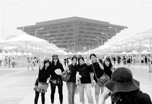 上海世博会累计参观游客人数突破2400万 7月8日,几名日本游客在中国馆外的高架步道上合影留念。截至12时30分,上海世博会当日票检入园的游客人数为33.98万,自正式开园以来累计参观游客人数已达2427.31万。 新华社发