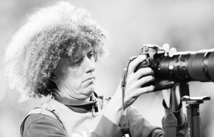 7月7日,一名摄影记者在德班球场准备拍摄德国队与西班牙队的半决赛。当日,在德班举行的2010年南非世界杯足球赛半决赛中,德国队迎战西班牙队。