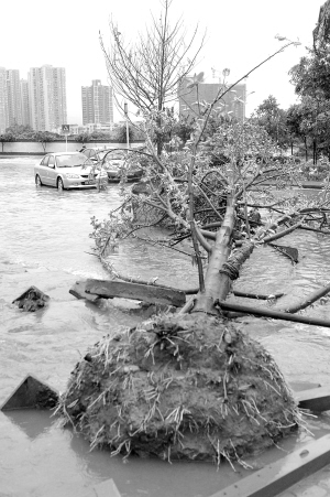 入汛以来最强降雨袭击重庆 7月9日,暴雨造成路边的一棵树倾倒。当日,入汛以来最强降雨开始袭击重庆主城区,随着降雨来袭,重庆天空瞬时暗淡下来。重庆市气象台已发布暴雨三级应急响应。 新华社发