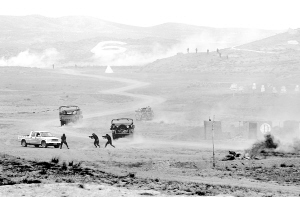 9时许,中巴参训分队以“边境地区山地联合反恐作战”为课题,在位于宁夏青铜峡地区的兰州军区某训练基地开始进行联合反恐实兵演练。参加演练的中巴双方特种部队226名官兵,被混编为A、B两个连,在歼轰战斗机、运输机、运输直升机、武装直升机的配合下展开行动。