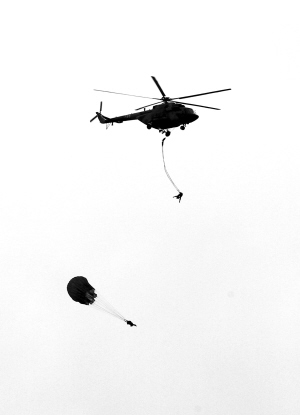 图①: 7月9日,巴方特战队侦察员300米低空跳伞“敌后”侦察情况。