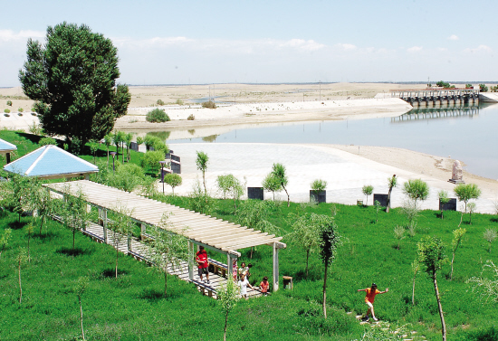 甘肃河西走廊防风固沙治理取得显著效果,营造出一片“沙漠绿洲”。 (新华社记者 高健钧 摄)