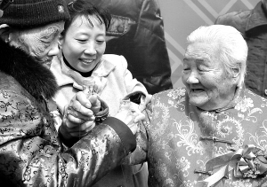 郑州市两位年逾百岁的老人在结婚80周年纪念日的当天,按传统婚俗又办了一场婚礼(2010年3月7日摄)。7月11日是第21个世界人口日。据河南省人口计生委的统计预测,今年7月份,河南省的总人口将达到1亿,成为目前全国唯一人口过亿的省份。从1973年到2009年,河南人口出生率由31.47%。下降到11.45%。,自然增长率由24.02%。下降到4.99%。。由于计划生育,全省累计少生人口3300多