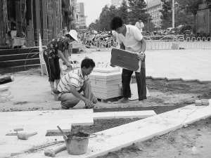 ①七一路人行道铺设接近尾声。