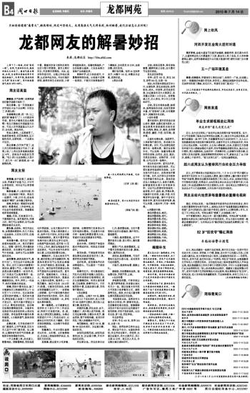 快乐池塘:不上班的时候,和朋友一起去绿荫下乘凉,围坐在一起聊天、下棋、打扑克;或去商场里面“蹭凉”、去快餐店喝冷饮。