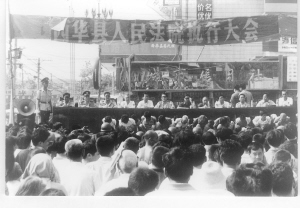 面对当时严峻的社会治安形势,全市各级党委、政府认真贯彻中央和省委的重大决策部署,在全市迅速开展了一场“打黑除恶反盗抢”为龙头的“严打”整治斗争。图为西华县人民法院执行大会。