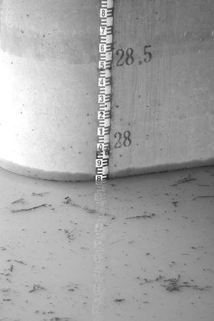 7月19日,安徽阜南县王家坝闸前水位标尺,该标尺显示水位达到27.78米。