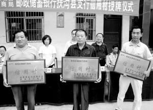 扶沟县“银村手拉手共推农村新发展”活动开展以来,以生产发展为核心,以农民增收、农业增效为目的,实现农户发展有资金,银行业务少风险,促使新农村建设取得新成效。图为该县为“信用村”授牌。