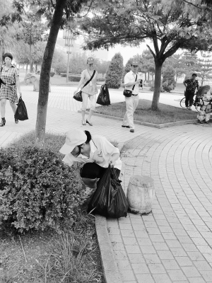 近日,河南财经政法大学十多名大学生来周口参加社会实践活动,与周口义工团成员一道走上街头捡拾垃圾,宣传环保。 程昊 摄