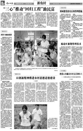 随着社会的进步和农民生活水平的提高,农民不仅需要美好的物质生活,而且需要丰富多彩的精神文化生活。在农村,男人们农闲季节都外出打工,家里只剩下老人、妇女和孩子,所以,留守妇女们就常常聚在一起打麻将。生活在农村的贾木,几年前就萌发了组建农民文化组织的念头。他认为,如果村村都成立腰鼓队、秧歌队,给留守妇女创建一个开展文化活动的平台,让她们既可以健身,又可以娱乐,那么,打麻将的恶习自然就会去掉。2007年春节过后,贾木把自己的想法告诉爱好唱戏的扶苏村计生管理员王省,二人一拍即合。就这样,王省创建了家庭农民文化俱乐部,贾木担任音乐、戏曲老师。不久,他们在村计生协的大力支持下成立了农民腰鼓队、秧歌队和计生文艺宣传队。由于留守妇女们以前根本就没有打腰鼓、扭秧歌的基础,贾木不得不一个动作一个动作地手把手教她们;计生文艺宣传队的队员们不懂乐谱,更没有跟着乐器演唱过,所以,宣传队排练戏剧小品、快板等节目时,贾木也是一句一句地教。功夫不负有心人。经过几个月的努力,扶苏村的腰鼓队、秧歌队和计生文艺宣传队不仅走上街头为群众演出,还经常参加乡里和县里举办的比赛。市、县宣传部门和电视台还给她们拍摄了专题片。在扶苏村的影响下,大朱庄、吴庄等村相继成立了腰鼓队、秧歌队和计生文艺宣传队,贾木则应邀利用星期天、节假日为她们进行义务辅导。现在,舒庄乡已成立农民文化组织10个,农民文化生活过得红红火火。