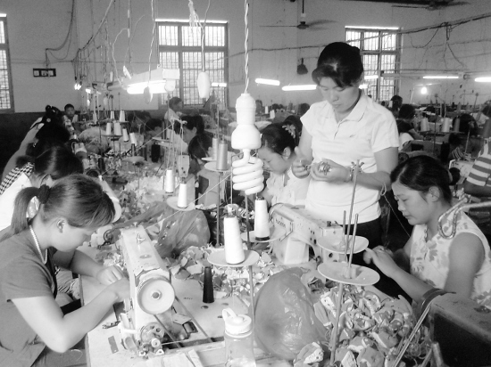 商水县舒庄乡三所楼村返乡农民工王旬在玩具生产车间检查产品质量。自去年以来,王荀先后投资150万元在舒庄、白寺、巴村三个乡镇创办3个玩具厂,吸收当地留守妇女400多人进厂就业。 乔连军 摄