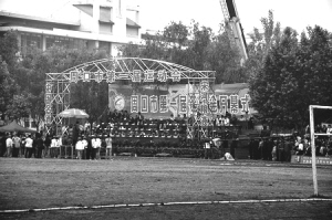5月8日下午,“宋河杯”周口市第一届运动会开幕式在周口师院北校区体育场隆重举行。市委书记毛超峰宣布运动会开幕,市长徐光发表热情洋溢的讲话。省体育局党组书记彭德胜到会祝贺,周口师院党委书记周太良,院长俞海洛,党委副书记张国生、李军法,副院长马金岭也应邀出席开幕式并在主席台就坐。郑州、洛阳、新乡、安阳、濮阳、商丘、许昌等10多个市的体育局相关负责人前来观看。