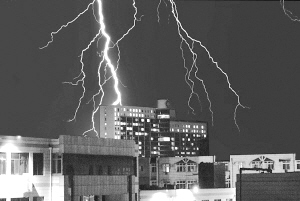 | 2009年6月14日下午,强对流天气突袭我市。图为一道道闪电划破周口夜空的情景。