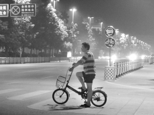 市区内几乎所有设红绿灯的路口,我都守候过。一个路口通常守上十几分钟,有的路口我会待近一个小时。建设路上,从中州路到大庆路共有四个红绿灯路口,我在七月初骑车去了三次,都因红绿灯故障,没能留下图片记录。