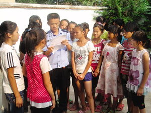 昨日,商水县公安局舒庄派出所副所长党群峰在杜店村“留守儿童暑期之家”对留守儿童进行暑假安全教育。暑假以来,舒庄派出所组织民警对全乡留守儿童进行“十不要”安全教育,收到了良好的教育效果。