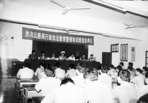 依法行政,文明治理,确保干线公路安全畅通。针对路政管理难度大、牵涉面广、反复性强的特点,扶沟县公路局党组结合自身实际,找准重点和突破口,以依法维护路产路权、创建文明示范路段为目标,以完善制度、强化管理、树立形象和开展清障保通专项治理为手段,强力推进各项工作措施的落实。2009年,该局累计巡查公路11600公里;处理案(事)件30多起;追回经济损失6万余元;清理马路市场4处;清理打场晒粮115处、堆积物315处、非公路标志321块、违章废牌156块、未经批准公路龙门架2个。在全市举行的春季路政管理竞赛活动中,取得了第二名的好成绩。在 “三夏”期间,该局广泛宣传,拉网排查,杜绝了公路上打场晒粮现象,在全市“三夏”工作评比中又一次荣获全市第二名的好成绩。6月份以来,扶沟县西瓜大量上市,为保障干线公路畅通,该局抽调15名工作人员,联合公安、工商等部门对马路市场进行专项治理,队员每天工作十四五个小时,中午一瓶水,几个烧饼,坚守岗位不下班,经过两个月的努力,保证了干线公路的畅通。为确保路产路权不受侵犯,去年6月份,该局路政大队主动出击,出动铲车20多台次,对全县干线公路堆积物及建筑材料进行了清理,并会同电视台、公安局对沿线加水点进行了治理。为确保治理后不反弹,达到依法治理的目的,执法人员协同法律顾问,按程序执法、调查取证,制作交通违法行为通知书、处罚决定书,根据时效起诉了7个加水点当事人,有力地震慑了损坏公路的违法行为。