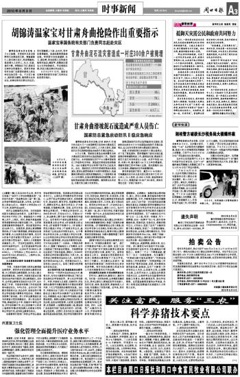 胡锦涛温家宝对甘肃舟曲抢险作出重要指示