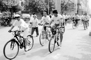 为倡导市民“绿色出行”,我市于近日开展了“自行车低碳绿色行”活动,活动吸引数百名骑行爱好者的积极参与。 (记者 李寒 摄)