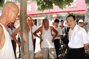 本报讯(记者 李凤霞)8月21日上午,市委书记毛超峰冒着高温酷暑,深入到市区人民路和五一路改造工程现场,实地察看了解工程进展情况,走访市民群众和被拆迁户。毛超峰强调,道路改造是为了方便人民群众出行,改善大家的生活环境,沿线群众一定要理解支持。政府各部门要转变工作思路,以人为本,群众利益至上,认真对待群众反映的问题,充分考虑到他们的生计生活;要强化服务意识,努力做好教育宣传、动员引导、矛盾化解工作。