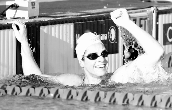 8月21日,澳大利亚选手西博姆庆祝夺冠。 当日,在美国加州欧文进行的泛太平洋游泳锦标赛女子200米个人混合泳决赛中,西博姆以2分09秒93的成绩获得冠军,并创造今年世界最好成绩。 新华社/路透
