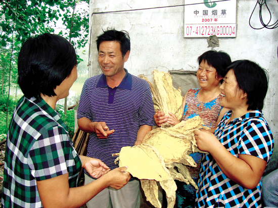 商水县袁老乡老虎庄村共产党员胡付山在向村民传授烟叶烘烤技术。该县在农村党员中开展了“党员示范户”带农致富活动,对全县在种植、养殖、加工等方面拥有一技之长的3000多名党员登记造册,充分发挥他们的技术优势,带动更多的农民共同致富。(刘飞 张慧 摄)