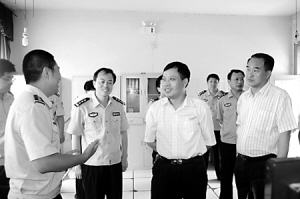 在刑警大队技术中队和看守所,刘广明深入技术室、管教室,对各项具体工作十分关切,与民警亲切交谈,边察看,边询问,使在场的民警深受鼓舞。
