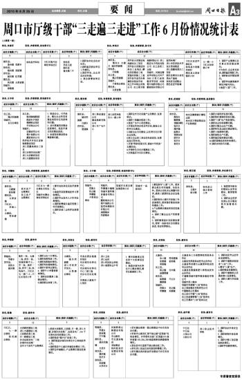 周口市厅级干部“三走遍三走进”工作6月份情况统计表
