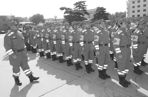 8月26日上午,由55名队员组成的中国国际救援队在北京首都国际机场集结,准备启程赴巴基斯坦洪水灾区实施国际人道主义救援。 新华社记者 张铎 摄