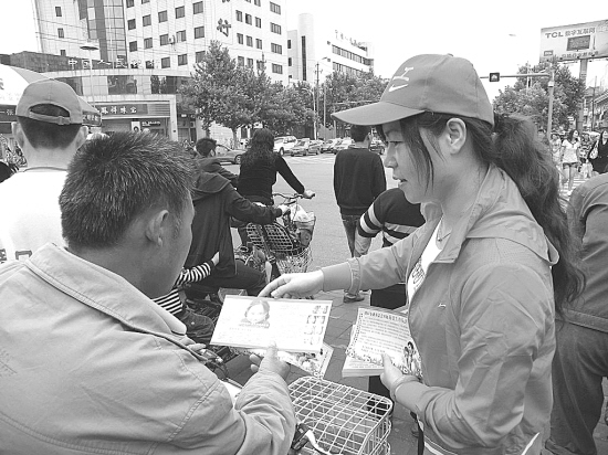8月24日上午,周口慈善总会爱心互助委员会的义工们走上街头,向行人发放 “微笑列车”唇腭裂修复免费项目宣传资料,并开展相关咨询服务活动。薛揄一行也到达了活动现场,并对慈善义工的宣传工作给予充分肯定。 (刘颖光 摄)