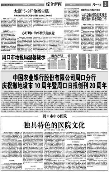 庆祝撤地设市10周年暨周口日报创刊20周年