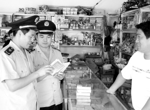 眼下正是广大学生采购学习用品的高峰期,为了确保他们买到合格的文具,扶沟县工商局执法人员对全县学习用品经营店进行一次专项检查,严防不合格文具流入市场。图为该局执法人员正在一学习用品商店进行检查。(卢付昌 任洪松 摄)