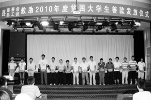 一年一度的大学新生即将入学,但一部分家庭贫困的学子虽然考取大学,却因为家庭经济十分困难面临入学难问题。为确保慈善助学工作落到实处,鹿邑县慈善会按照慈善救助程序,本着“公开、公平、公正”的原则,对申请资助的贫困大学新生进行认真调查、逐级审核和公开公示,最后确定资助对象,为贫困大学生解决了入学难问题。8月23日上午, 在鹿邑县委、县政府的支持下,在社会各界的关怀下, 115名贫困大学新生均拿到了慈善会、总工会发放的2000元慈善助学金。115名寒门学子在拿到慈善助学金后,十分动感,一致认为手中拿到的不仅是助学金,更是社会各界爱心人士传递的爱心火种。家住杨胡口镇仝楼行政村的贫困生王振,今年考入了商丘师范学院,通过接受救助,王振能顺利按时入学学习。他高兴地告诉记者:“社会爱心人士都在关注我们,让我感觉到了社会大家庭的温暖,我一定会努力学习,争取早日为社会、为家乡做出贡献。”