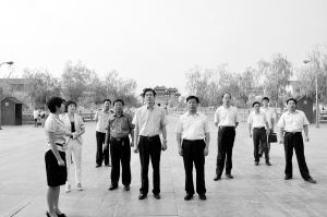 近日,香港文汇报河南分社社长程相逢一行由县委书记杨廷俊,县委常委、宣传部长曹文亮等领导陪同在明道宫景区参观。当日,程相逢一行深入到老子故里旅游景区和工业集聚区进行实地采风。近年来,随着该县工业经济和文化产业的不断壮大和提升,吸引着各级新闻媒体的关注,为促进鹿邑经济又好又快发展提供了腾飞平台。(闫子健 摄)