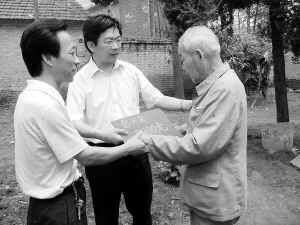 9月3日是中国人民抗日战争胜利65周年纪念日。昨日,扶沟县开展慰问抗日老战士活动,走访慰问抗日老战士20多人,发放一次性慰问金5.55万元。(纪俊辉 邹同宝 摄)