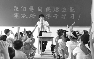 邓亚萍为流动人口子女上新学期第一课 9月1日,邓亚萍在北京昌平区汇蕾流动人口子女学校给孩子们上新学期的第一课。