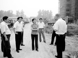 9月1日,周口市委常委、项城市委书记王宇燕深入项城市教育园区、项城市体育馆等工程项目建设工地,察看工程项目进展情况。(李杰 摄)